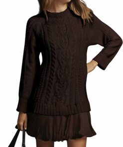 - This stylish mini dress features a classic crew neck and chunky cable knit texture, offering a cozy, high-end look modern silhouette