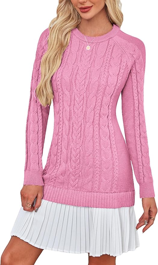- This stylish mini dress features a classic crew neck and chunky cable knit texture, offering a cozy, high-end look modern silhouette