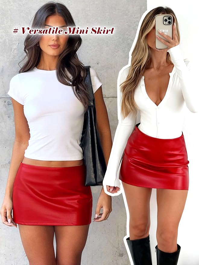 - Feature: Classic black leather mini skirt create a timeless yet trendy aesthetic, elastic fitted waist and mid low rise for comfy fit, chic A-line hemline and built in shorts ensure you can move with confidence
