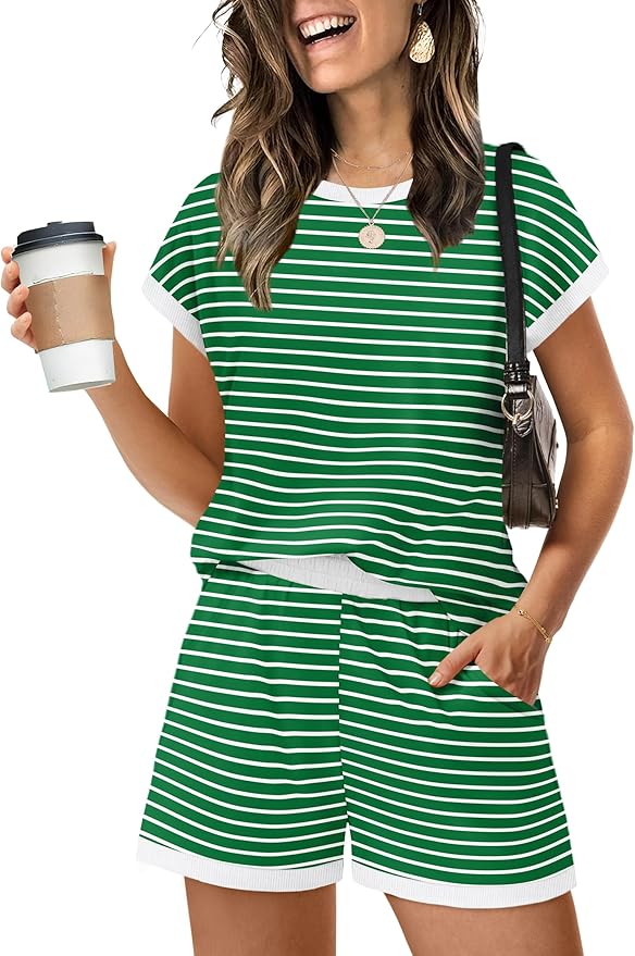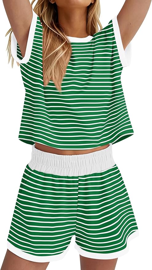 Be the first to review “Women Green Stripe Short Sets DE30” Cancel reply